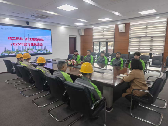 11月19日,在精工钢构集团所属精工重钢结构有限公司会议室,召开了我校建筑钢结构工程技术专业实习生见面会暨拜师仪式。参加会议的有我校钢结构专业的5位实习生、企业一对一结对指导的5位师傅,精工重钢人事部负责人雷秀卿经理主持会议。雷经理首先对实习生的到岗表示欢迎,她介绍了企业的基本情况、实习期间工作生活的注意事项,并预祝实习顺利。指导师傅代表发言介绍了实习生顶岗实习的工作内容和岗位要求,并表示将关注实习生成长、耐心解答疑问,诚心分享经验。实习生代表发言表态将在师傅指导下认真学习、踏实工作,在实习岗位上做出成绩来。浙江精工重钢结构有限公司是精工钢构集团的主要制造基地,主要承接公司各类型项目的钢结构构件的加工制作。这次为我校实习生一对一安排指导师傅,体现了企业特别重视技术人才的培养。